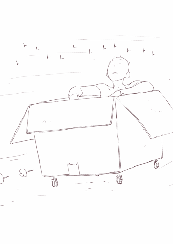 風を切る段ボール号。